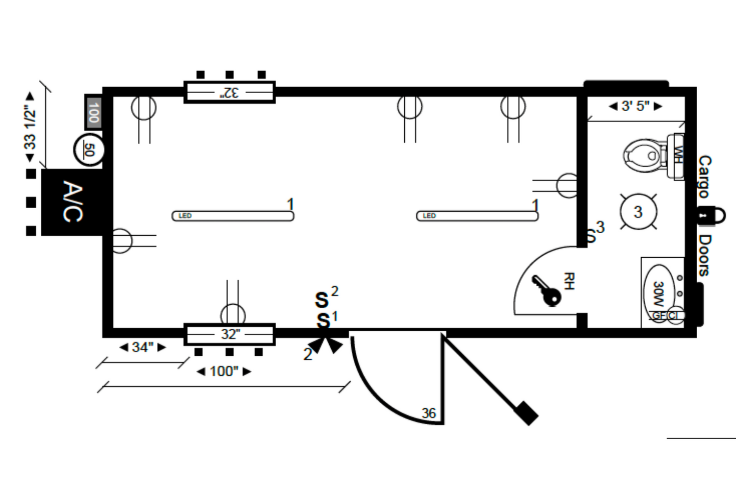 Comprehensive Electric Package: Includes a 100 Amp service panel, interior can lights, exterior LED floodlight, and multiple outlets to support daily operations. A 50 Amp generator inlet ensures reliable power wherever the unit is deployed.